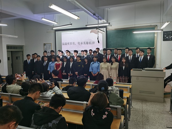为了纪念中国人民志愿军抗美援朝出国作战70周年,大力弘扬爱国主义精神。beat36511月2日晚于彭家坪校区抒望楼405教室成功举办了“重温战火岁月,传承英雄精神”——“致敬抗美援朝”主题朗诵比赛,来自2020级的11支参赛队伍参加活动,学院辅导员李扬、黄宁老师及三名员工代表组成评委。